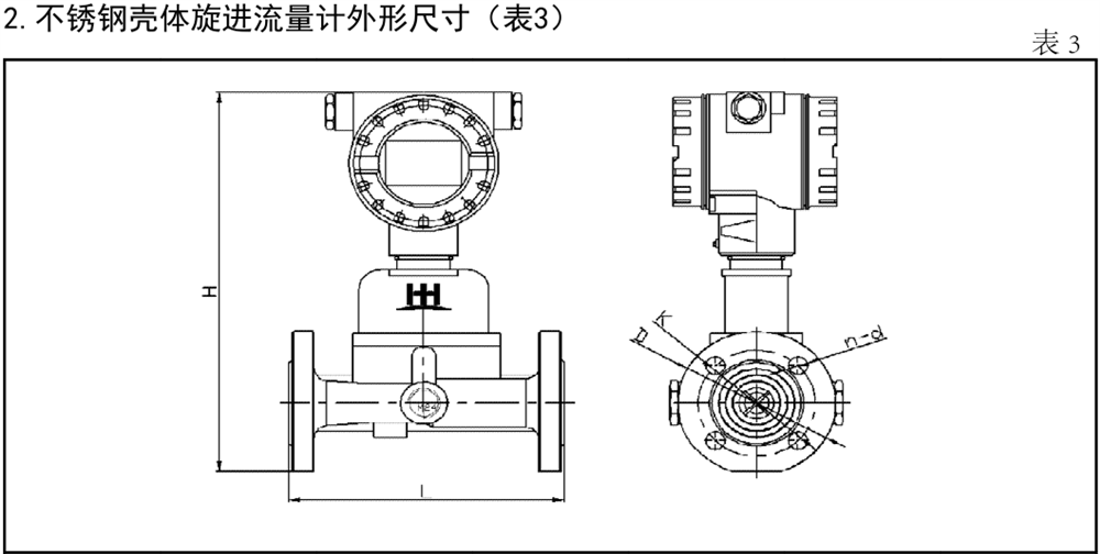 1.鋁合金殼體旋進流量計外形尺寸(表2)