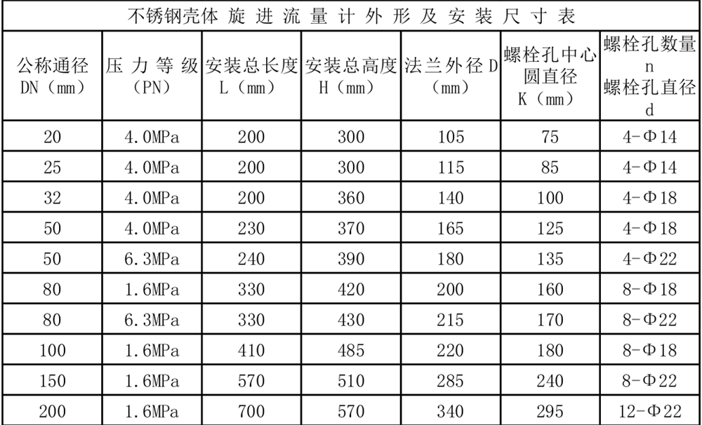 3、流量計規(guī)格、基本參數和性能指標(見表1)