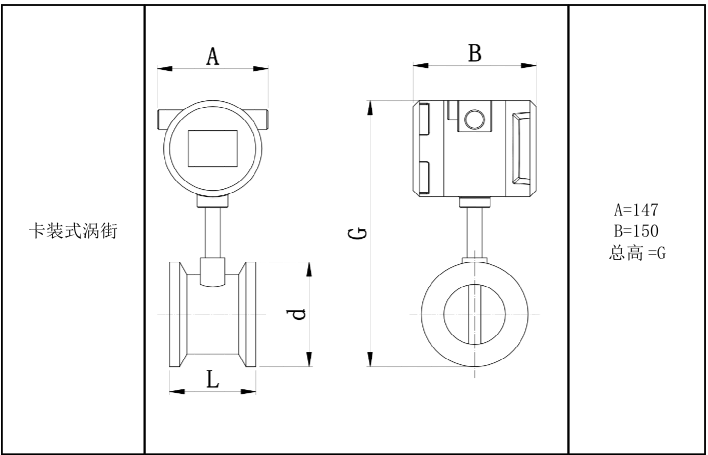 三、渦街傳感器結(jié)構(gòu)及尺寸