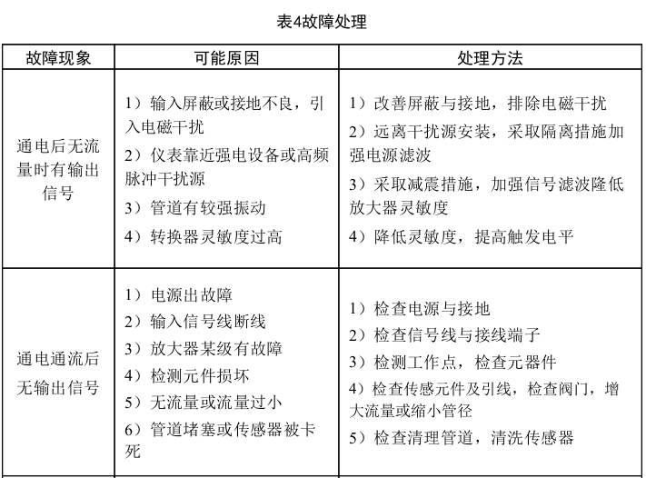 在通電不通流時轉(zhuǎn)換器應無輸出,瞬時流量指示為零,累積流量無變化,否則首先 檢查是否因信號線屏蔽或接地不良,或管道震動強烈而引入干擾信號。如確認不是上述 原因時,可調(diào)整轉(zhuǎn)換器內(nèi)電位器,降低放大器增益或提高整形電路觸發(fā)電平,直至輸出 為零。