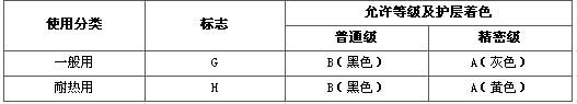 高溫硅橡膠補償導(dǎo)線使用分類、允許等級、護層著色標(biāo)志: